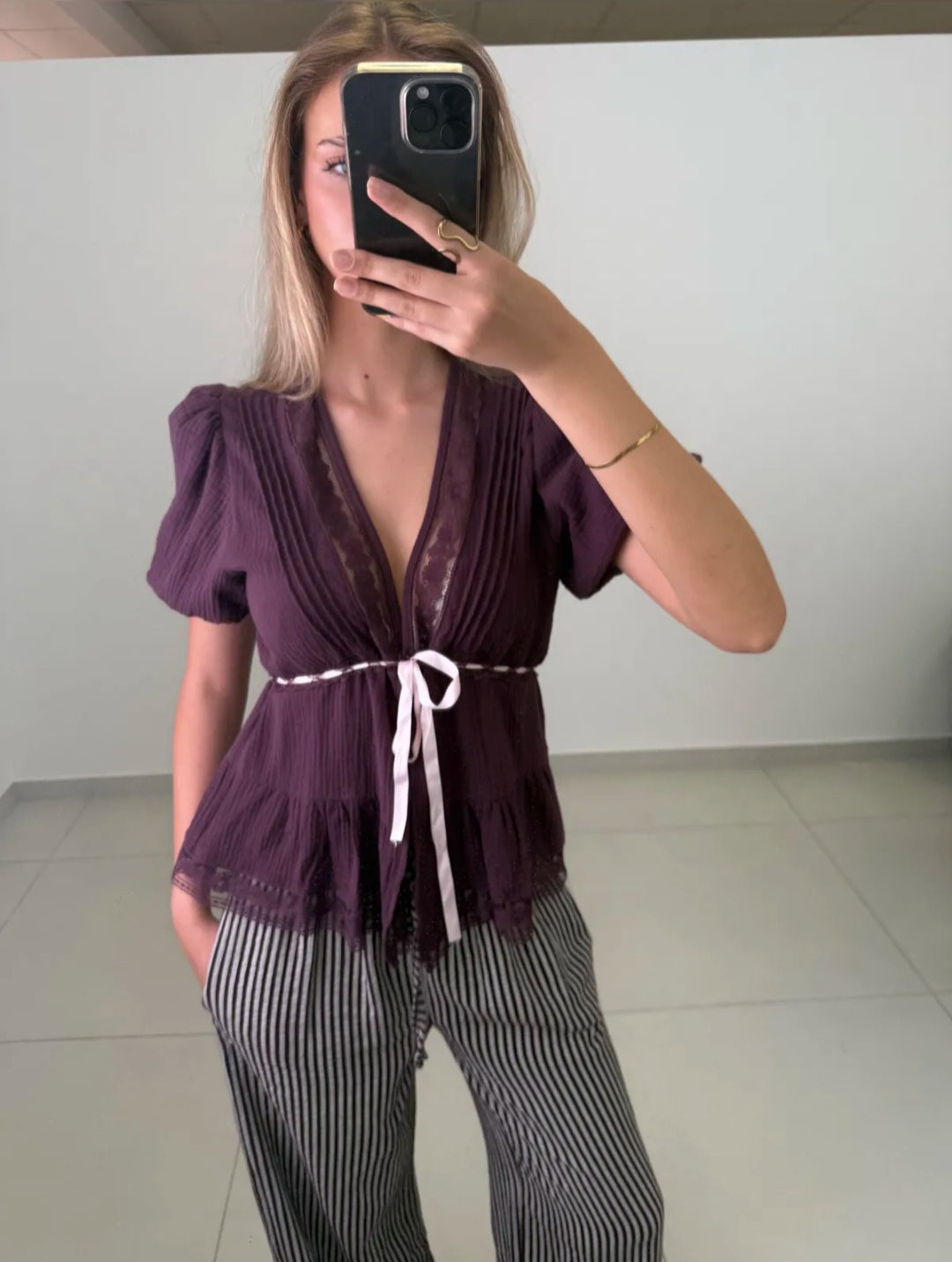 Kurzarm-Bluse Coffee